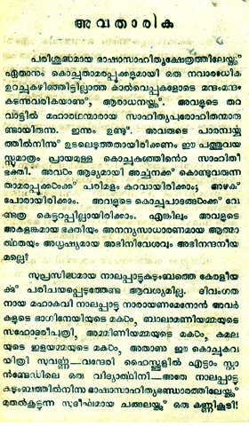 Excerpts from preface : A new worshipper enters into the sacred literary temple. Her family had great Literary priests. There are still. May be the devotion to literature, of this ten year old girl, originated from their heritage. May be the first Lotus flowers she bring for worship may be not that fragrant. Not too beautiful. Her small feet has not yet attained the strength to walk in steadily to the temple. Yet is not her innocent devotion, extraordinary sincerity and unflinching will worthy of praise?